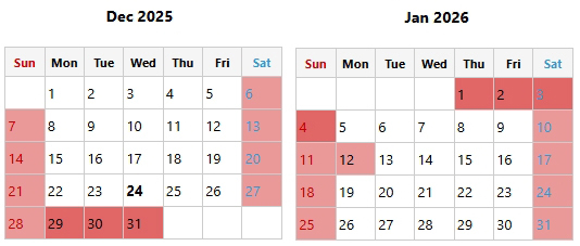 All inquiries and emails sent during this period will be replied to after 5 January 2026.